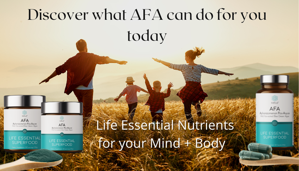 AFA from Saluz is the premier whole food in natural healing because it was designed by the most elite chemist in the world: nature. Through billions of years of adaptation this blue-green algae developed an unrivaled nutritional compound that pairs fundamental minerals, vitamins, enzymes, and acids with their required chemical partner, providing an unmatched 97% bioavailability for our bodies.